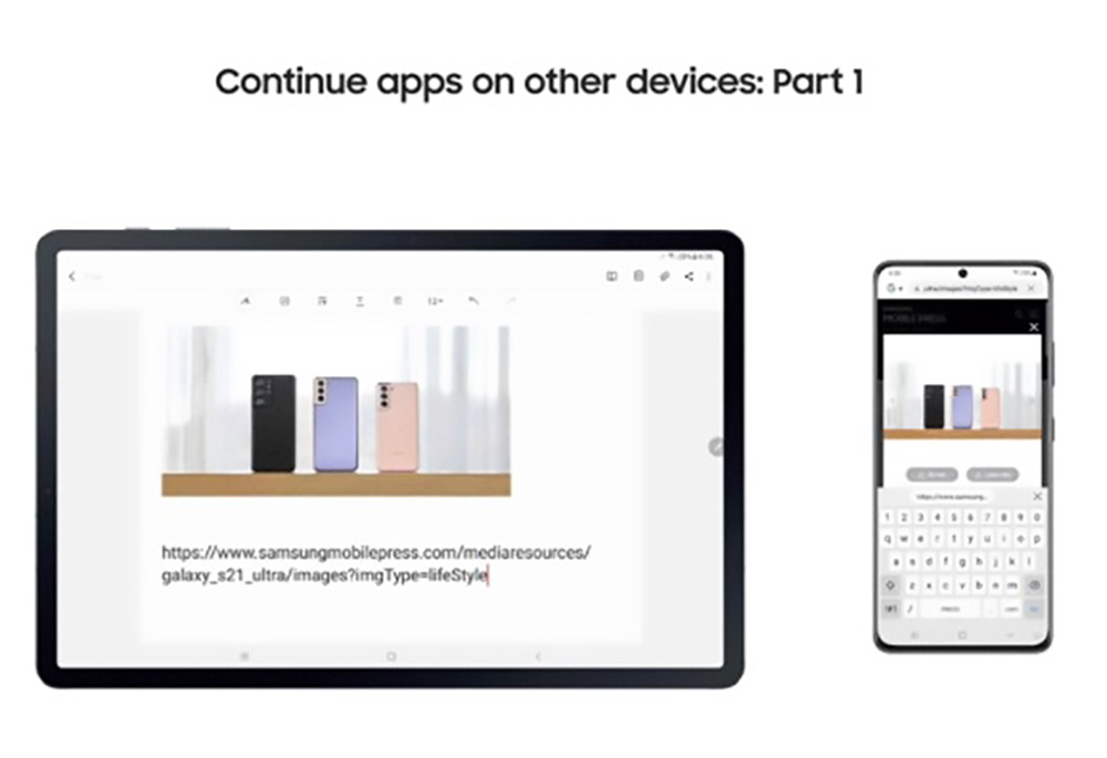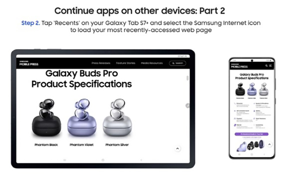Samsung has added in an uninterrupted continuation of Samsung Internet browsing and auto-syncing of Notes between devices. All you have to do is move from a phone (like a Galaxy S21) to the tablet, hit the recent apps button (or swipe into it), and look for a special “Recents” button in the bottom right corner that will let you continue.