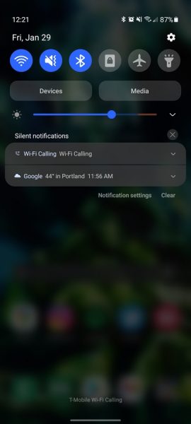 You see, like I mentioned, these device controls are typically accessible via the power menu on Android 11 devices. However, in One UI 3.1, the controls are placed in the Devices and Media menu that is incorporated into the notification pulldown. Furthermore, your Home devices are also placed in a drop down menu below Samsung’s own SmartThings controls, so it’d take a bit of accidental stumbling for anyone to come across this stuff unless they knew exactly what they were looking for.