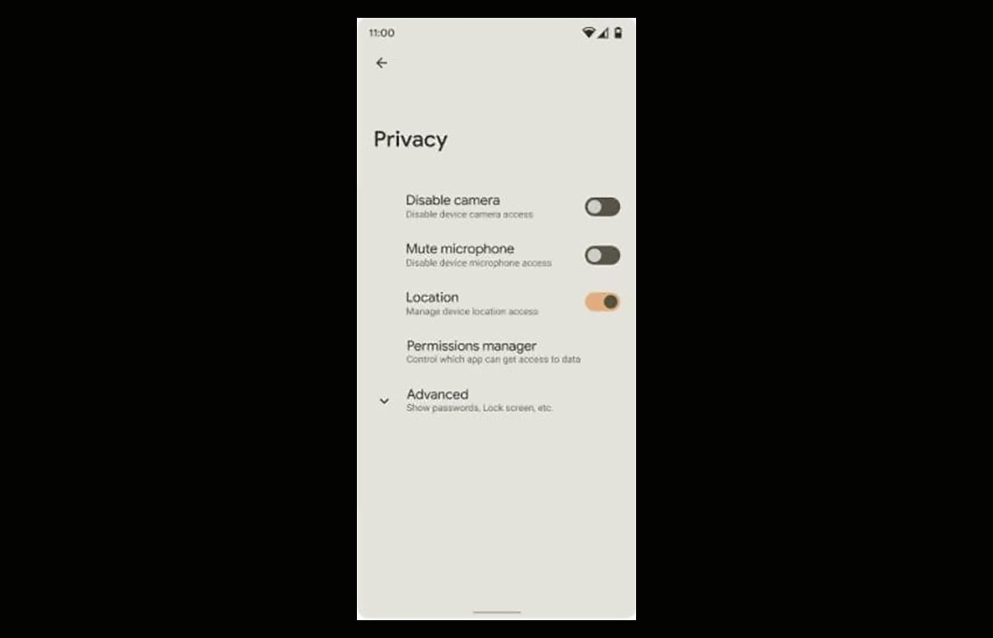 Finally, Google may be working on a new privacy page within settings that lets you easily and fully disable the camera and mute the microphone on your device with a simple toggle.