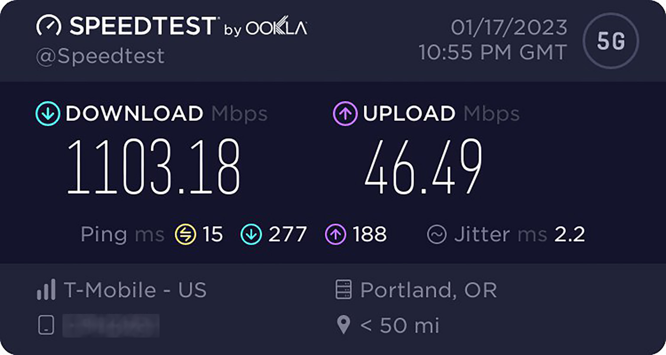 And for those curious, here is a speedtest I ran this week in Portland on T-Mobile where I topped 1Gbps download speeds. I got the same score the week prior. At the same location, my Verizon phone can barely hold a “5G” signal.