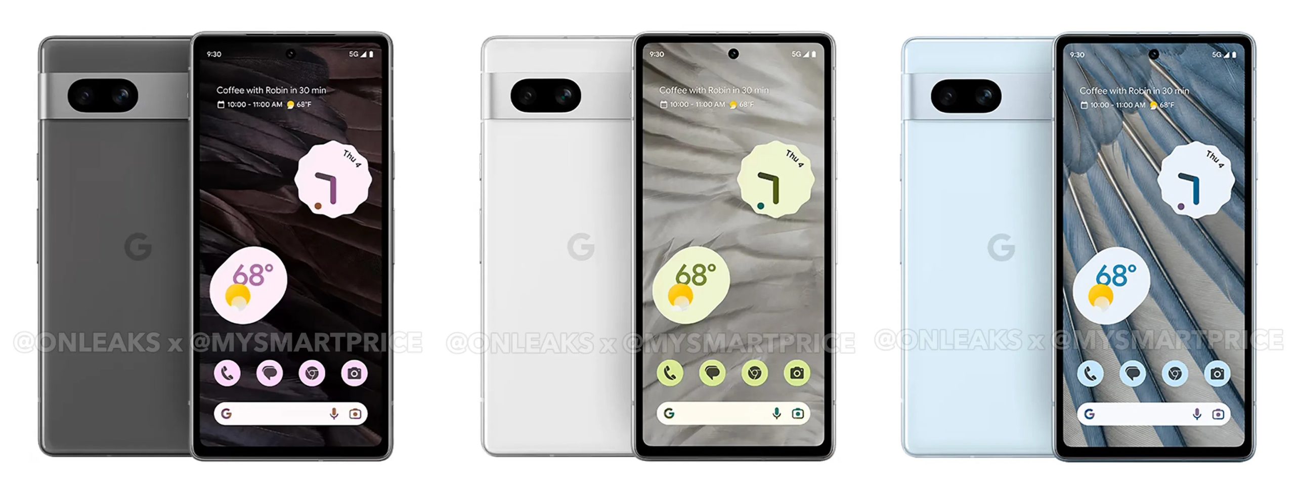 According to @onleaks, the below images are official renders of the Pixel 7a in the colors Google plans to sell it in. The renders are high resolution and look like product images we might see in a retail listing or directly from Google.