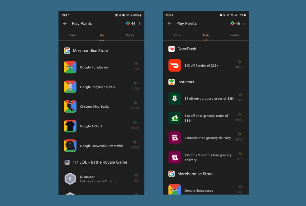 Additionally, Google is partnering with companies like DoorDash and Instacart. As an example, for 500 points, you can redeem a $5 off a $35+ order coupon via Instacart. That’s a free loaf of bread right there. For DoorDash, 1000 points will get you $10 off an order of $25 or more.