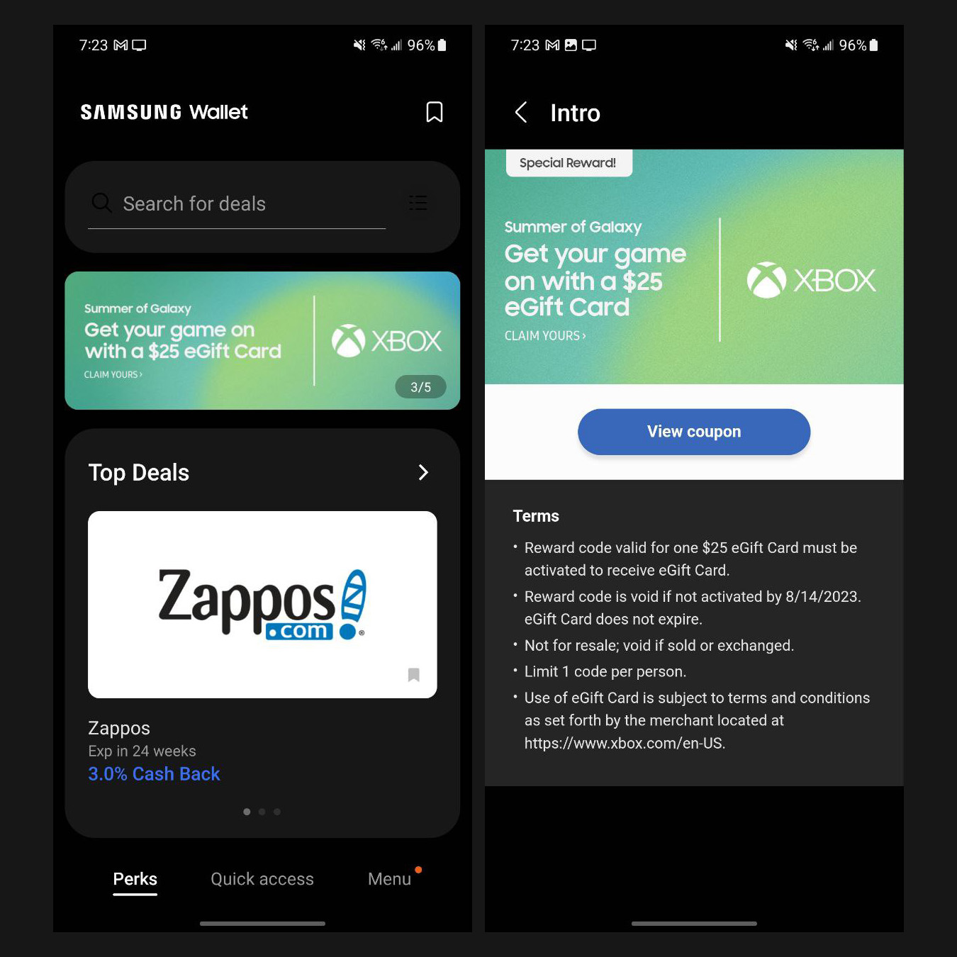 All you need to do is grab your Samsung Galaxy phone, fire up Samsung Wallet, and find the Xbox promo to claim in the “Perks” tab. If there is anything specific to know, it’s that you might need to hurry as quantities are limited.