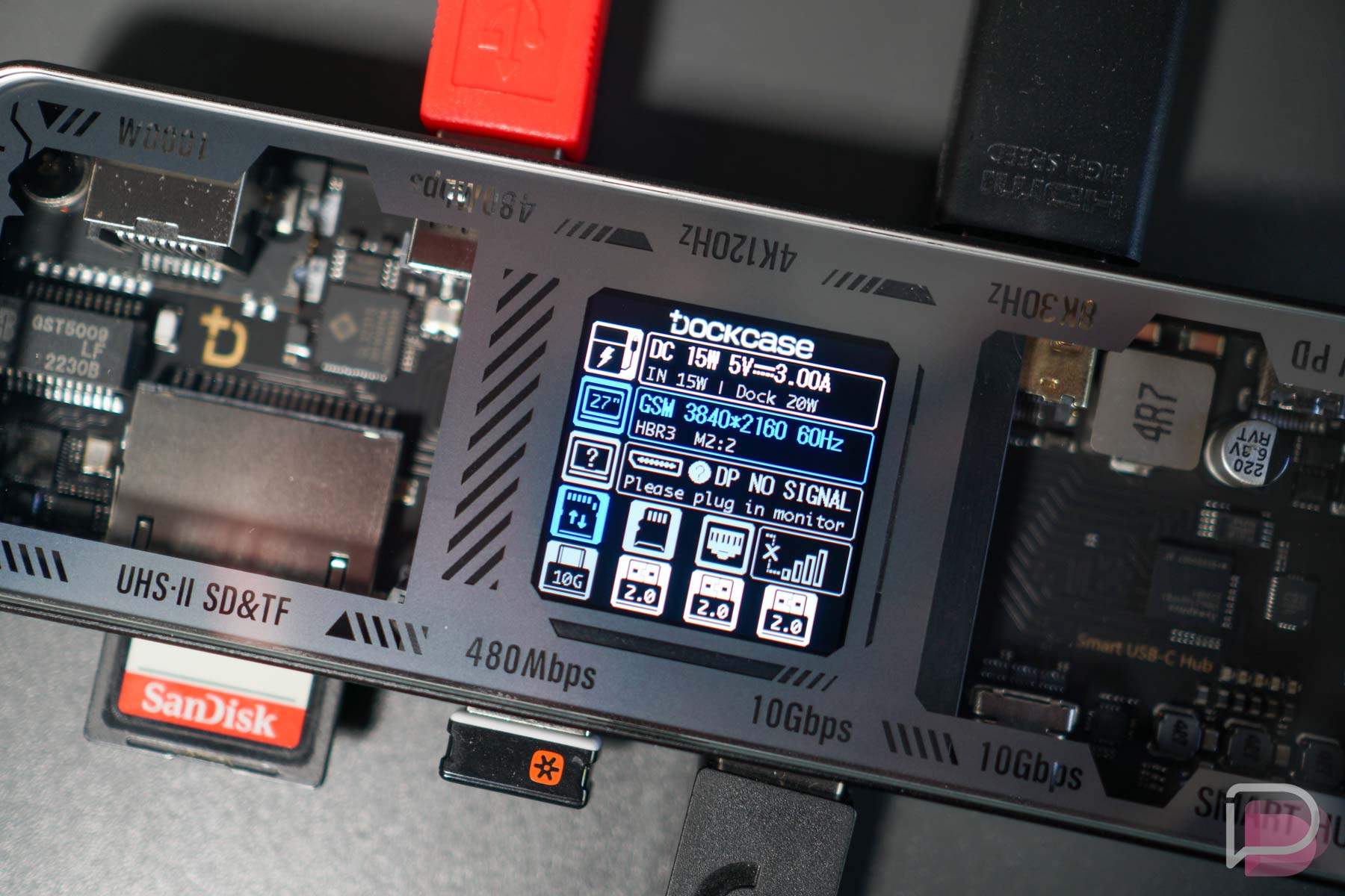 Not only do you have all of these ports for whatever type of work you might be doing, but the dongle also has a built-in screen for configuring and diagnostics. It can take the guess work out if a certain component you’re running is on the fritz, which can be very handy at times. On top of that, the display will show data speeds, how much power is being distributed and more. It’s super nerdy and super cool.