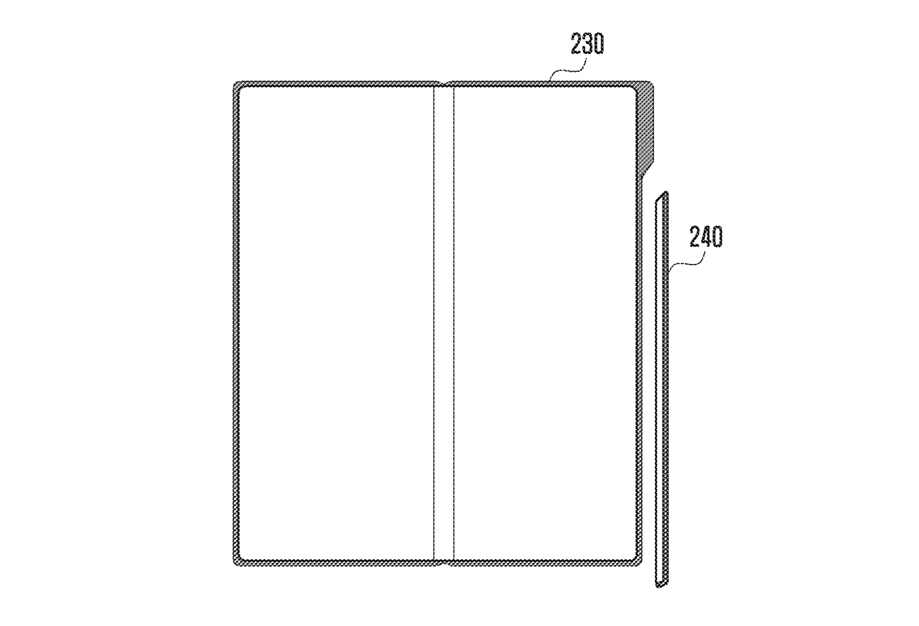 You can view the entire patent filing here, but Samsung’s issue is very clear. People want a thin foldable that isn’t too bulky. When adding a slot for an S Pen, there’s nothing to do besides add bulk to the device. In each of the designs we’re seeing, the stylus either attaches to the device on the back or side, essentially becoming a part of the device. Shown below, this sort of design would not only bring an S Pen to the device, but also help keep its slim profile.