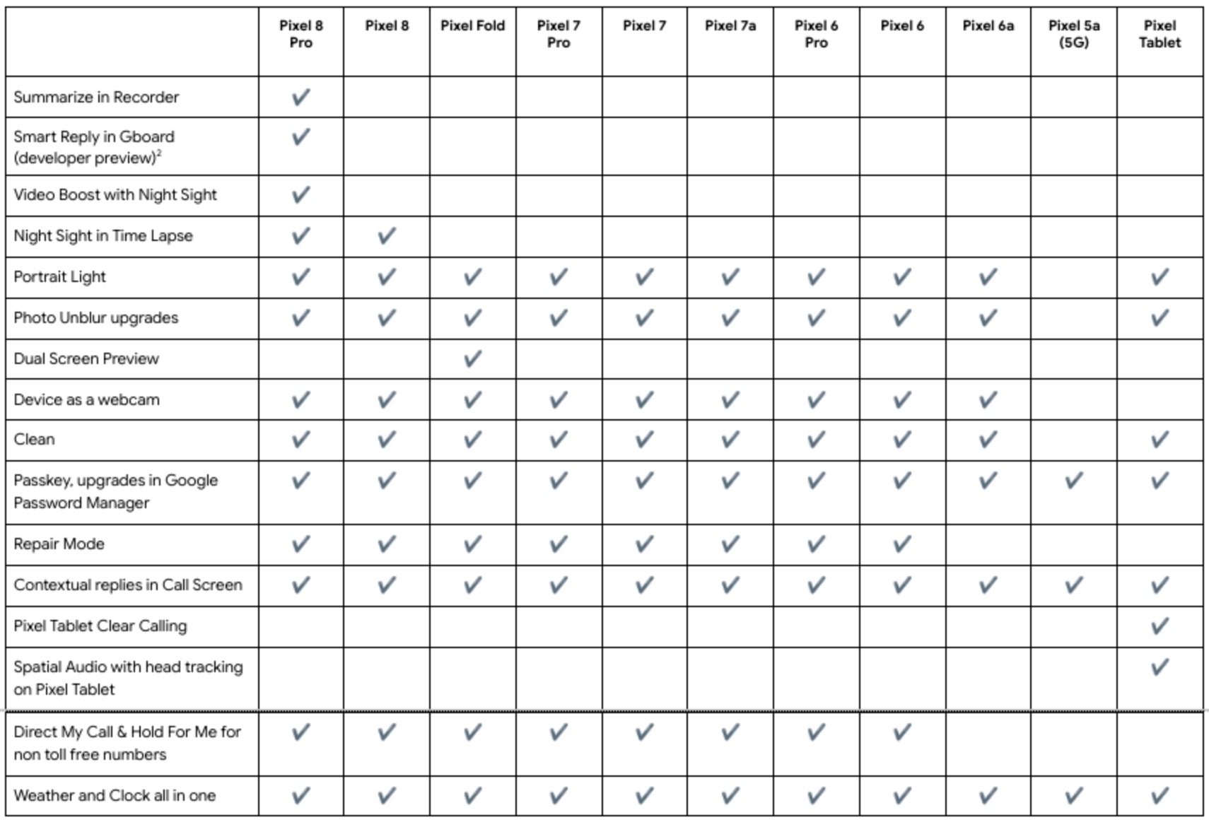 - Pixel Tablet Clear Calling, Spatial Audio: Clear Calling now helps reduce background noise and enhance your voice when on video calls with the tablet made by Google. If you have a pair of Pixel Buds Pro, the Pixel Tablet can also now take advantage of Spatial Audio, or you can see what that same spatial experience sounds like through the Tablet’s speakers.