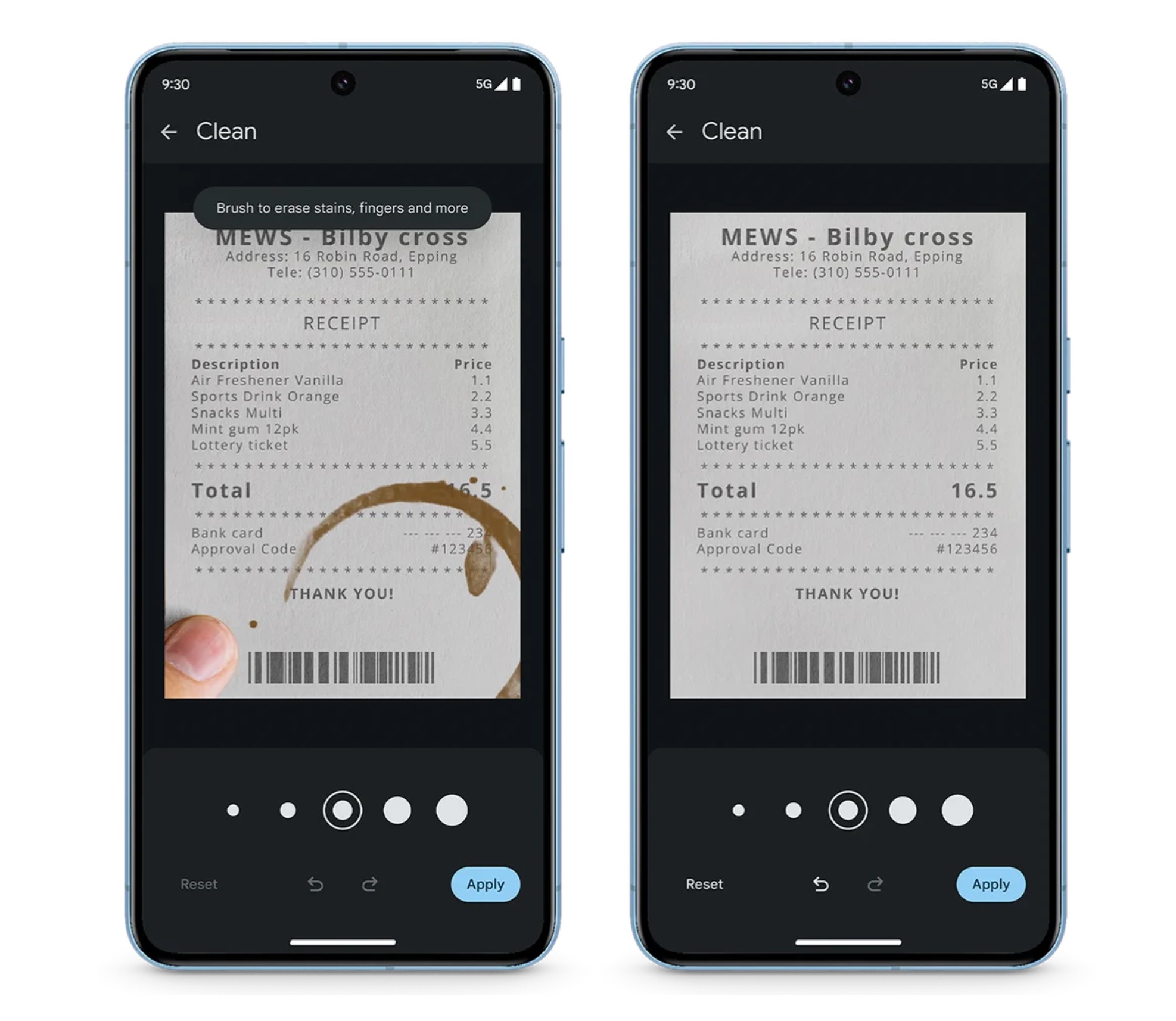 - Clean image feature: When scanning Google Drive documents, those images produced may have smudges or stains on them. Google is adding a “Clean” tool that lets you swipe away the nasties and get a clean image.