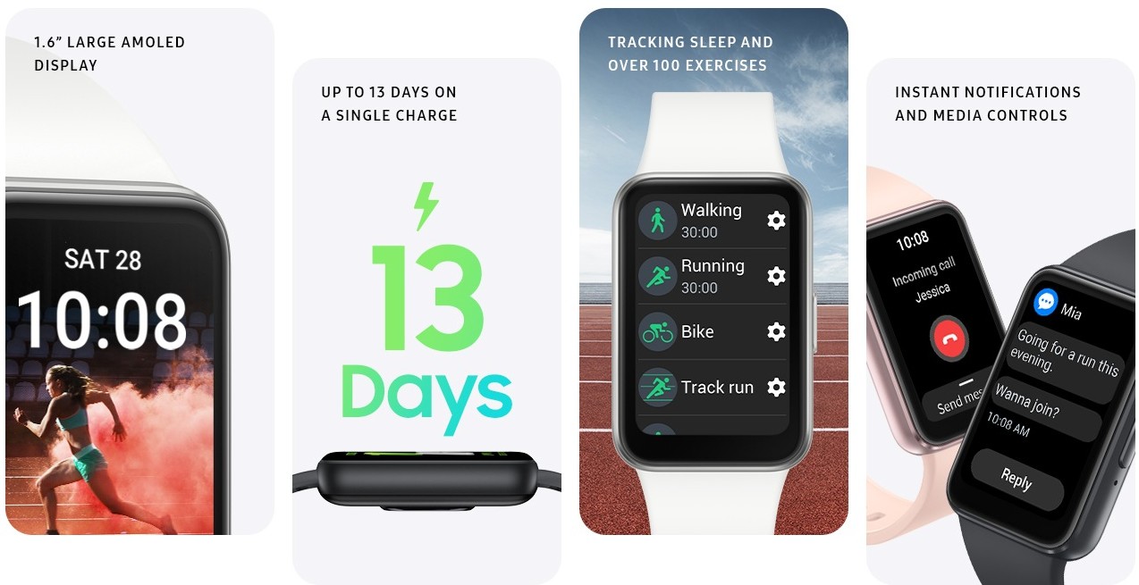 The upgrade is that AMOLED display, coming in at 40mm (1.6-inch), much larger than the Fit 2’s 27.8mm display size. Other specs include an aluminum body frame, 5ATM + IP68, fall detection, 13 days of battery, sleep tracking, exercise tracking, plus an optical heart rate sensor. What this device lacks is also important. There’s no NFC, no mobile payments, no 3rd-party apps, no ECG, no GPS, no irregular heart rhythm notification, no speaker, and no blood pressure. It really is just a health and fitness tracker, but even the health tracking seems somewhat limited.