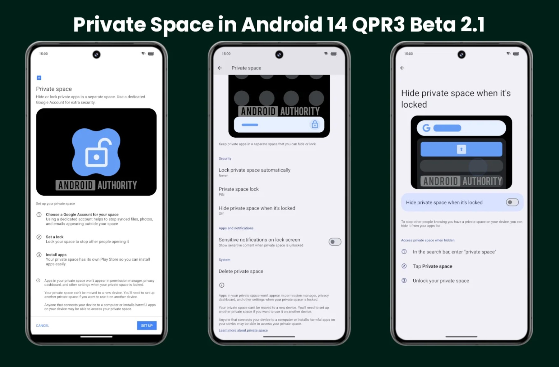 Late last year, Android 15’s Private Space was discovered while rummaging through code that Google was still working on. With Google releasing more code in the latest Android 14 QPR3 Beta 2.1 build, we now have a complete rundown of how this feature looks and operates.