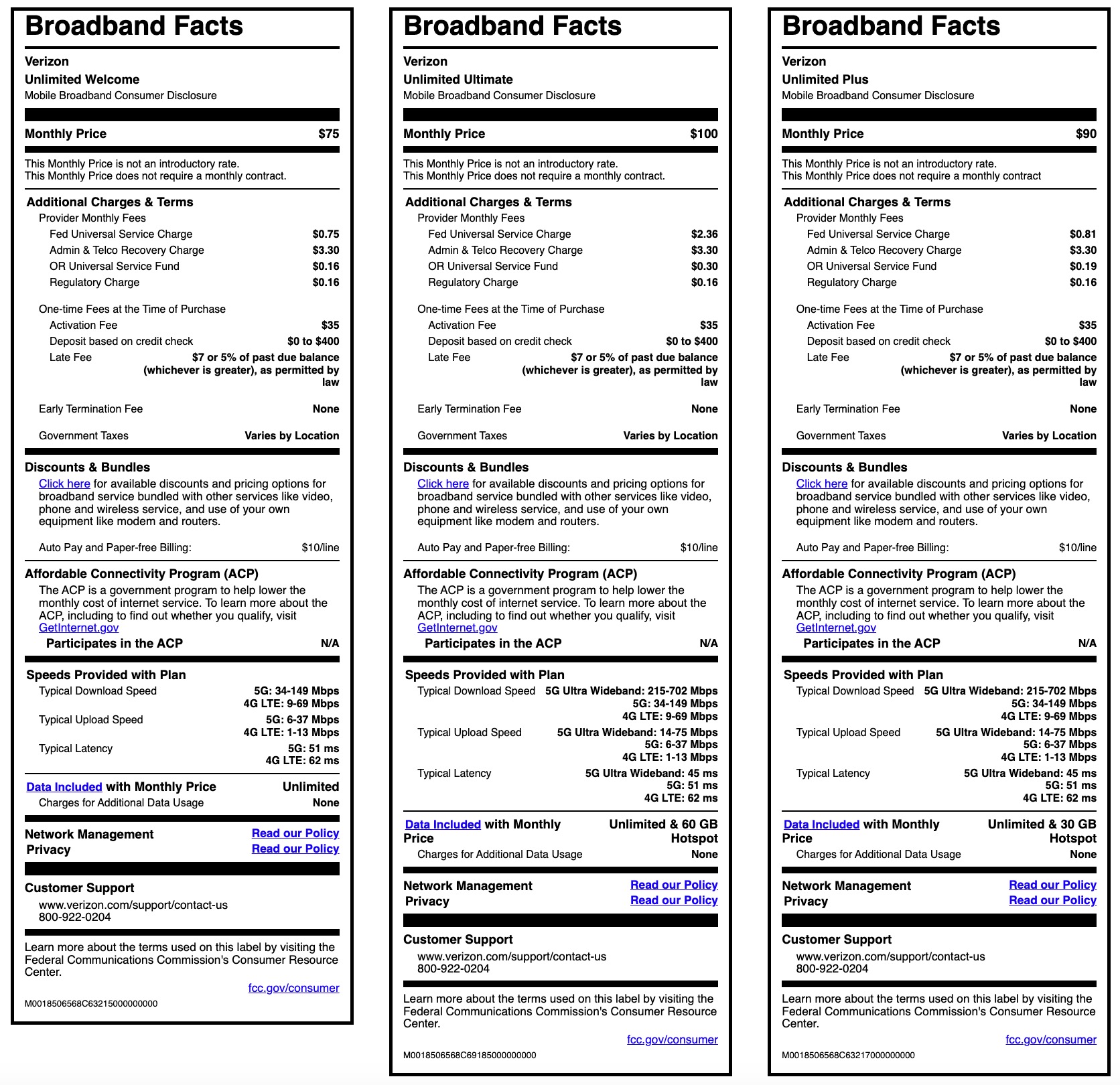 Verizon’s Broadband Facts for both consumer and business plans can be found here.