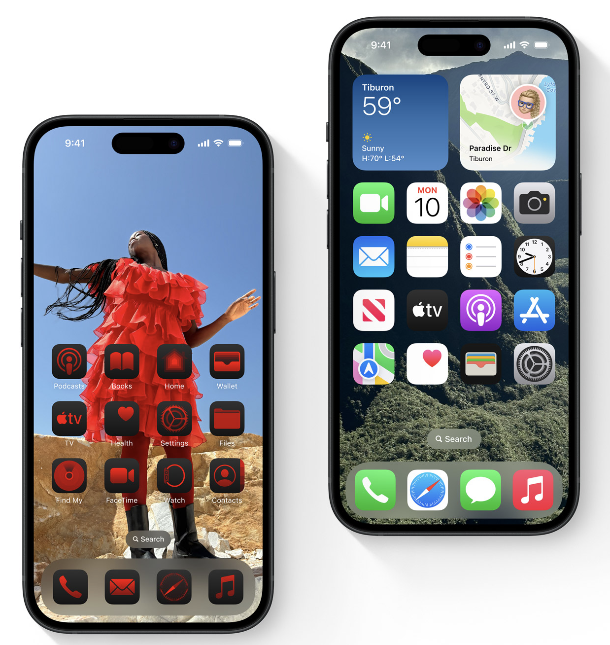 For the home screen, Apple is bringing the ability to change your icon colors and also intro’ing a new dark look for icons and widgets. You’ll also be able to make your widgets appear larger, whatever that means.