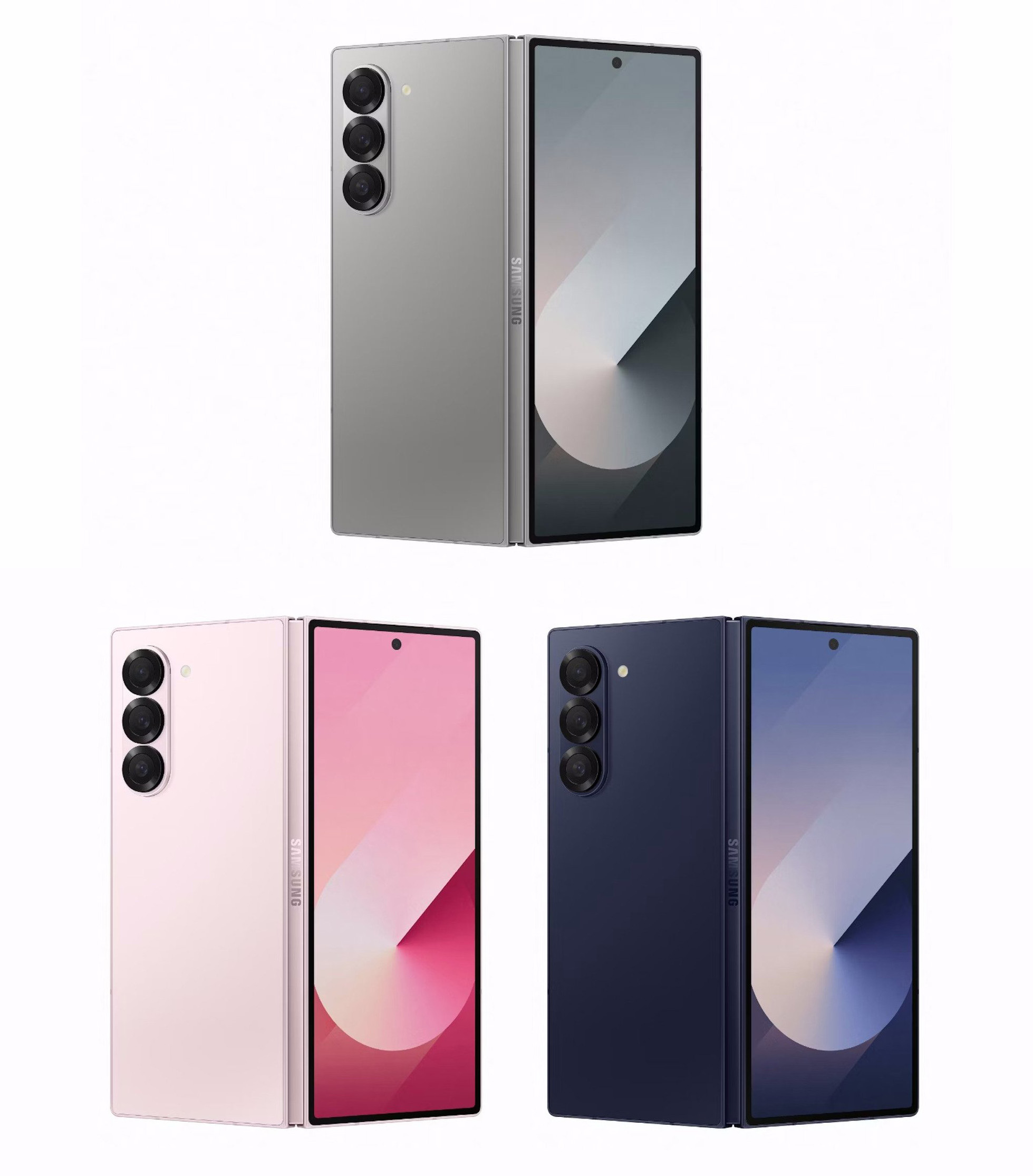 GALAXY Z FOLD 6 COLORS: We don’t have official names for this first set of colors on the Fold 6, but it’s looking like a titanium metallic, a straight-up pink, and then a darkish blue or purple. All can be seen below, so feel free to name them as you think Samsung would.
