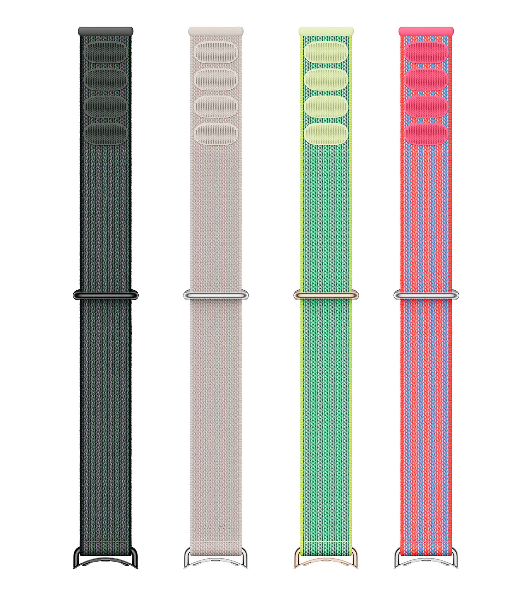 For those who missed it, the Pixel Watch 3 Performance Loop Band was described as “your new run buddy” with a micro-adjustable hook and loop sizing system to get you the “perfect fit.” It’s made of polyester, nylon, and elastane yarn, so it has the “right amount of stretch during workouts.” It comes in a single-size band that fits wrists 137mm to 203mm. There are stainless steel lugs that attach to the case, with the band looping through one of those (and then hooking) to help you perfectly adjust to your wrist.