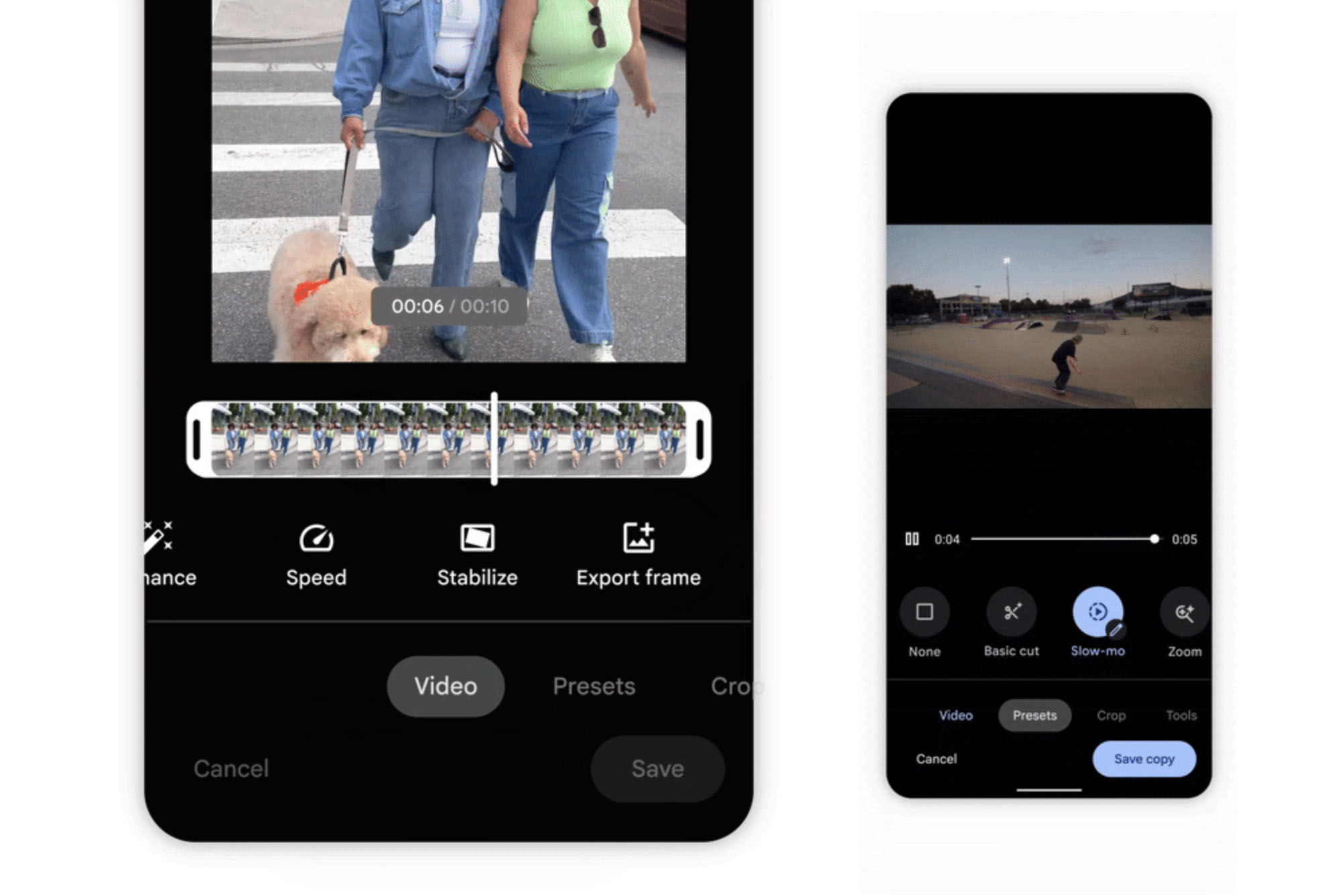 - AI-powered presets: And finally, AI-powered video presets for “Basic cut,” “Slow-mo,” and “Zoom” should start showing up under a “Presets” button. These new options “can automatically trim the video, adjust lighting, control speed, or apply effects like dynamic motion tracking of main subject, zooming in the main action, or applying slow-mo with just a few taps.”
