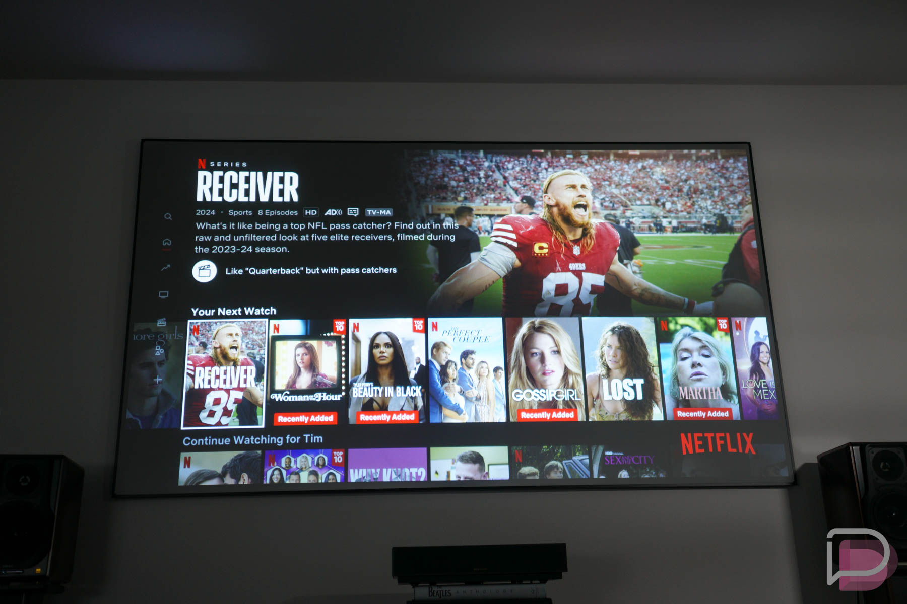Setting up the actual unit is very simple, thanks to Google TV. You set it up like any other Android device, then have full access to Google Play for all of your apps and services. To get things aligned, you have built-in keystone correction, which can help shape the projection to whatever surface you have. Since this is just a review unit, I had to assemble just the right height off of my floor with a combination of boxes and books I had in the home, but once everything was aligned and placed where it needed to be, it’s been a perfect viewing experience. The Witching Hour during NFL RedZone, plus college football Saturday with YouTube TV’s multi-game view has been ridiculously fun to watch.