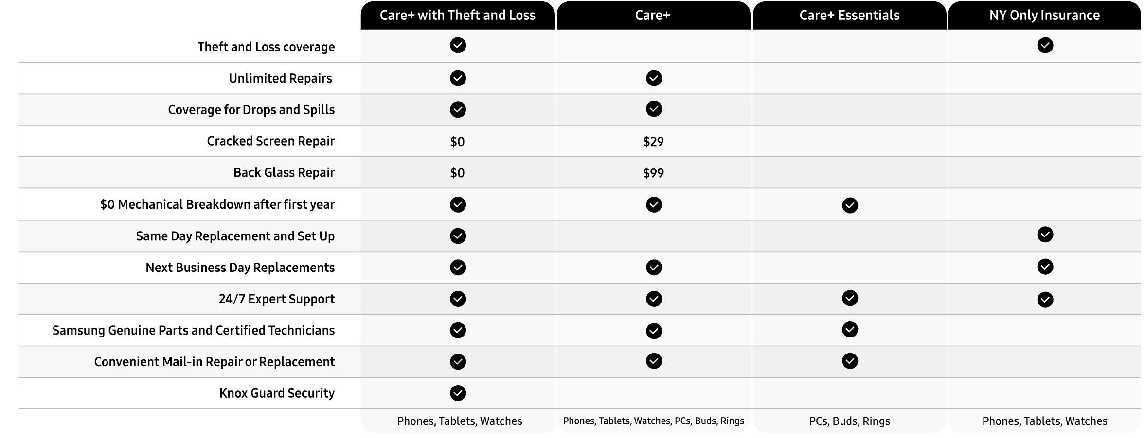 Care+ w/ Theft and Loss is Samsung’s top tier of Care+, granting you a lot of protection. Its price is determined by your phone’s suggested retail price, but if you’re someone who doesn’t use a case and tends to either break or lose their phone, it can pay for itself quite quickly. You can check your eligibility and pricing here.