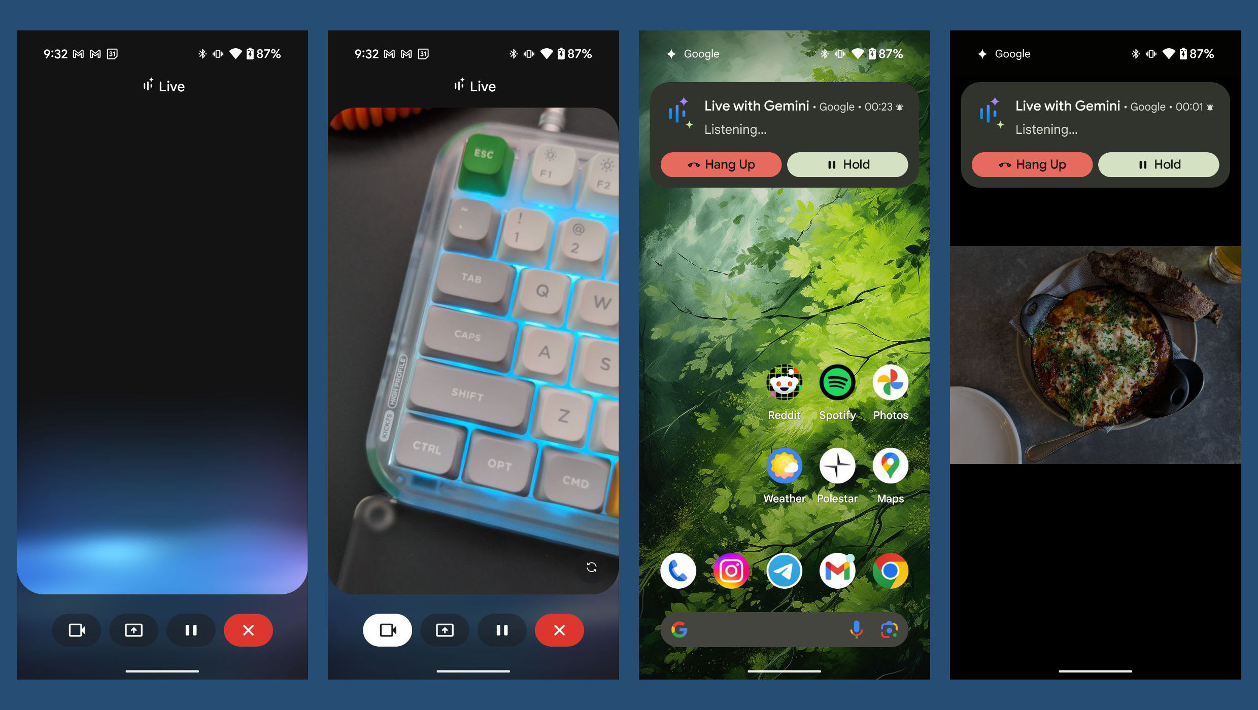 How this works (in the quickest way) is you fire up Gemini and then tap the button that says “Share screen with Live.” This will activate Gemini Live for those casual AI conversations, but it lets Gemini see your screen for questions or analysis. It can either look at whatever is on your screen or you could then open your camera to let it see your real world. You can also just open a Gemini Live conversation and now find camera and screen share shortcuts next to the pause/stop buttons.