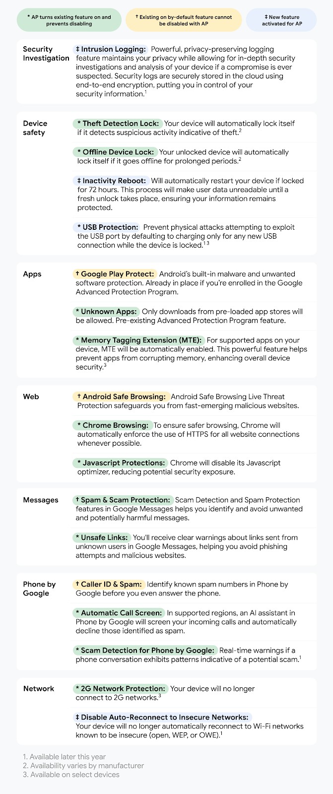 Advanced Protection activates a suite of security features, combining new capabilities, such as Intrusion Logging, with pre-existing ones already found on your device. Available later this year, Google describes Intrusion Logging as a “power, privacy-preserving logging feature” that allows for security investigations and analysis on your device if a compromise is suspected. Logs are created, then uploaded to the cloud using end-to-end encryption.