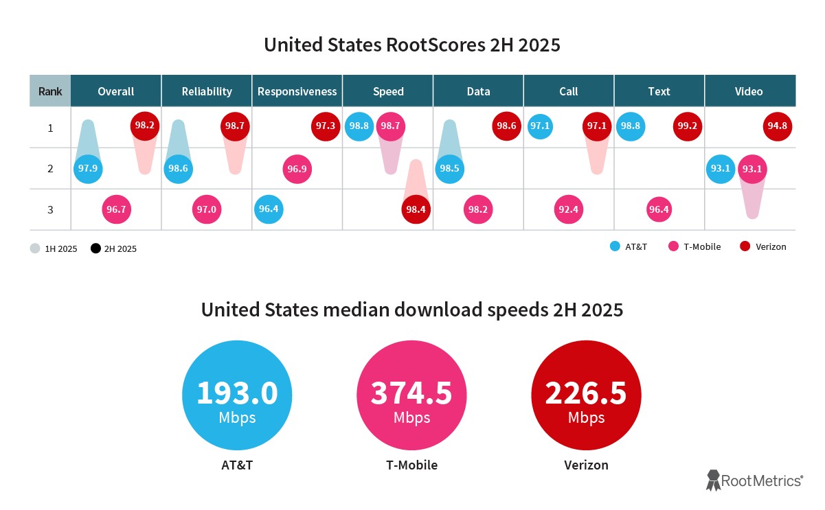 The latest State of the Mobile Union report from RootMetrics is now live, providing analysis on which of the mobile carriers performed best in the second half of 2025. Performance is broken down into many different categories, as well as markets, which allows each carrier to get their fair share of awards for marketing purposes.