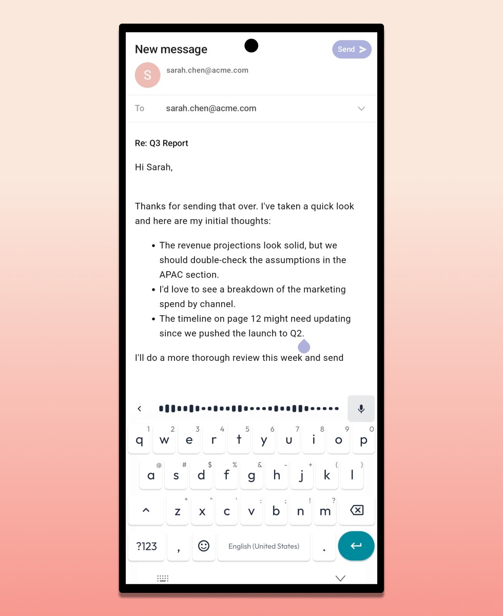 That message resonates with me. There has hardly ever been a natural feeling when using voice dictation. If this is a problem that AI can actually fix, I’m all for it. A lot of the AI things that my phone can do have never impressed me, but this one actually makes sense and does.