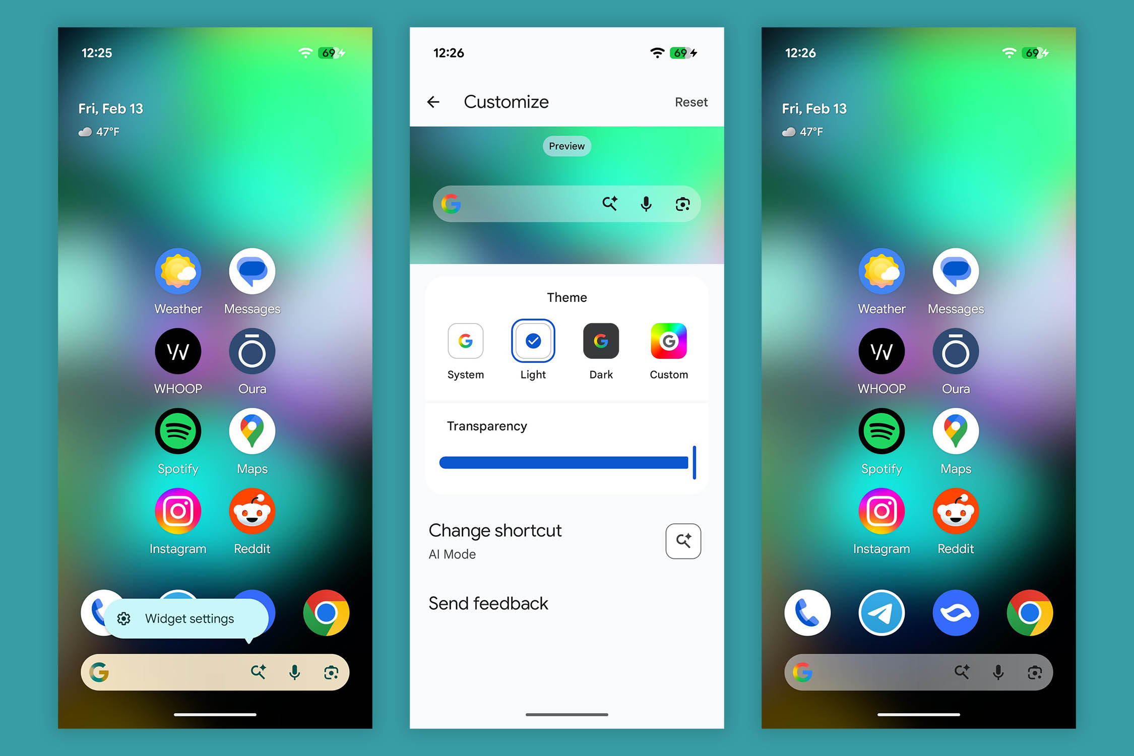 Previously, at least on my Pixel 10 Pro XL running Android 16, you simply couldn’t long-press on it. However, you can customize a search bar in settings that look like this, but they then add an extra Search widget rather than update the pinned bar.