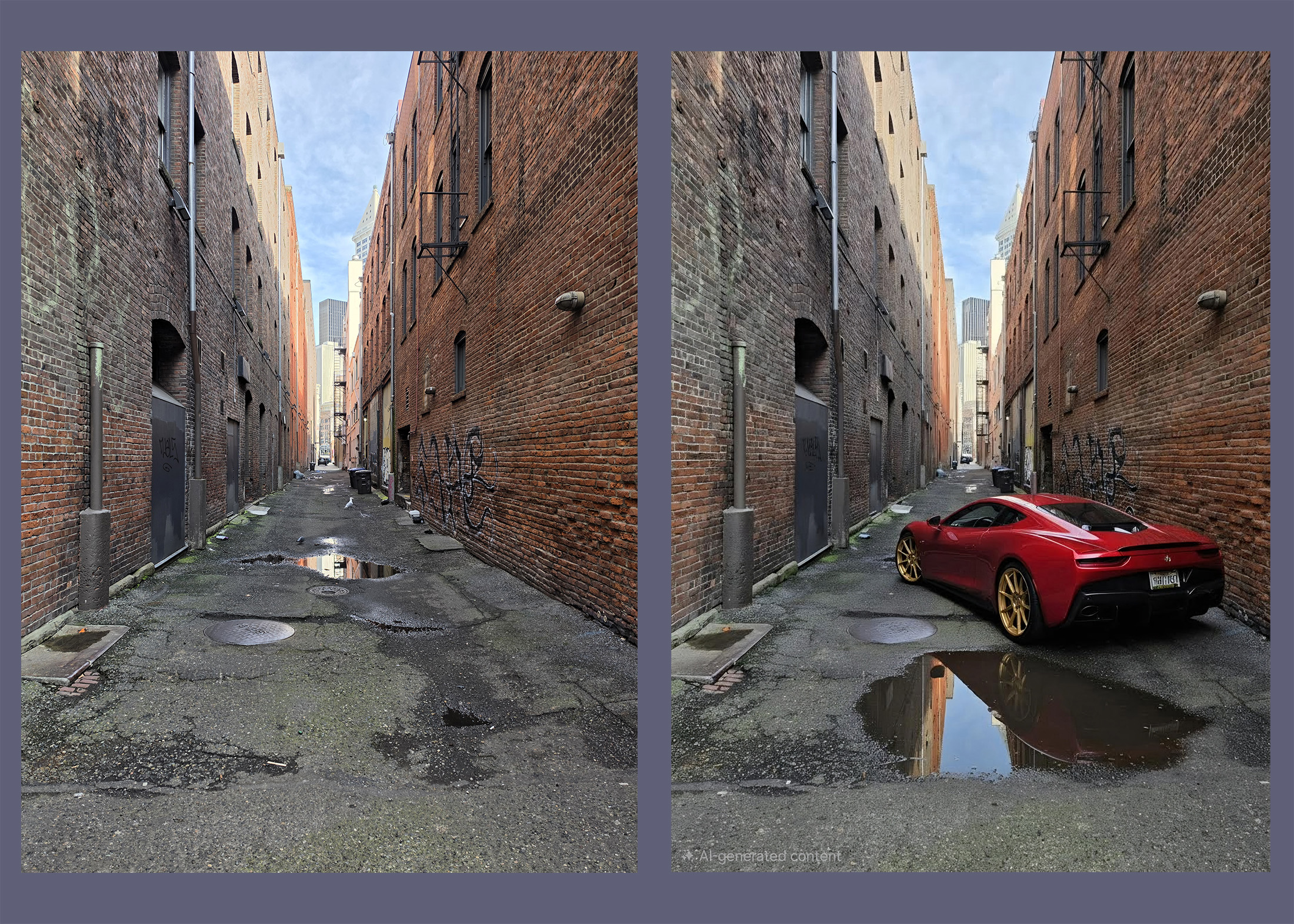Another neat keynote-centric feature is Photo Assist. Inside the Gallery app, users can now make any AI-powered edits they may want, but there are limitations. You can add hats to a dog or add animals to a photo, but you can’t make it look like a natural disaster has taken place to a landscape. Disappointing, but understandable. I tested it on a few phots and it all looks relatively good. I made it look like my foster dog was at a birthday party and I added a red sports car with gold wheels to an alley in Seattle. While the limits to this seem endless, I wonder what exactly we’re trying to achieve here? As AI advances, internally I now long more deeply for things that are “real” and imperfect. The amount of AI slop I see on my various timelines is getting to be a bit much, and ultimately, I don’t want to add to that. I see no issue in removing unwanted objects/people from photos, but beyond that, I have little desire to alter the past.